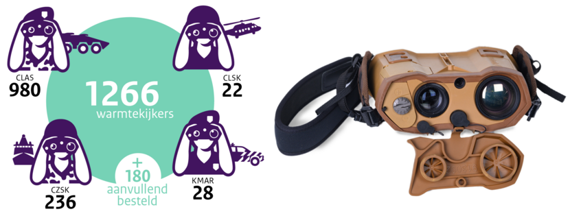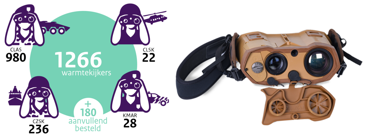 De nieuwe warmtebeeldkijkers helpen militairen zowel overdag als 's nachts bij het opsporen en waarnemen van tegenstanders. Warme objecten als mensen of apparaten lichten in wit (of zwart) op. Ook heeft het apparaat een lichtsterke sensor om in het donker beeld te genereren, dat als foto of video kan worden vastgelegd. Verder kan de apparatuur coördinaten, kaarthoek en afstand van doelen bepalen. Met 1,3 kilo is het bovendien heel handzaam. Zonder batterijen is het als sterke verrekijker te gebruiken.