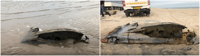 In eerste instantie dacht de medewerker van de Stichting Strandexploitatie Veere (SSV) dat er een zeehond langs de vloedlijn lag. Hij stopte zijn auto om het dier even goed te bekijken. Vervolgens realiseerde hij zich dat het geen zeehond was. Wat wel? Dat was niet direct duidelijk. “Ik dacht dat het misschien om een stuk roer ging of iets anders van een schip.”