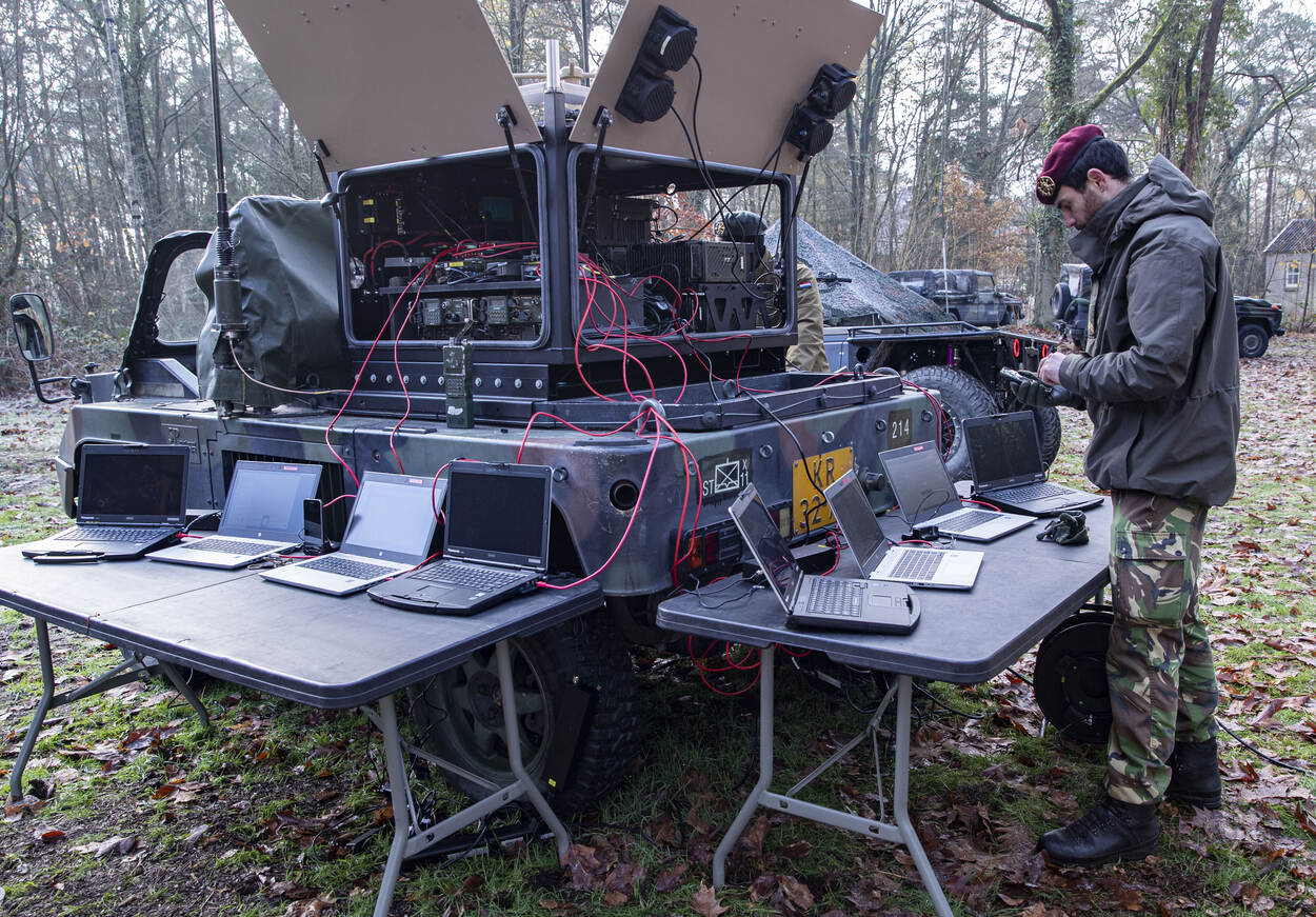 Ook voor deze uitgebreide proef leek COVID-19 weer eens roet in het eten te gooien. “We zouden nu als onderdeel van de Division Schnelle Kräfte op het Duitse oefenterrein Wildflecken zijn voor een grote oefening”, verontschuldigt stafofficier Plan Operations majoor Ron Muijlkens zich welhaast. “Maar we hebben ons snel aangepast.” In plaats van in Duitsland was de staf 11 Luchtmobiel coronaproof, daarom konden we hier op de Oranjekazerne in Schaarsbergen terecht.