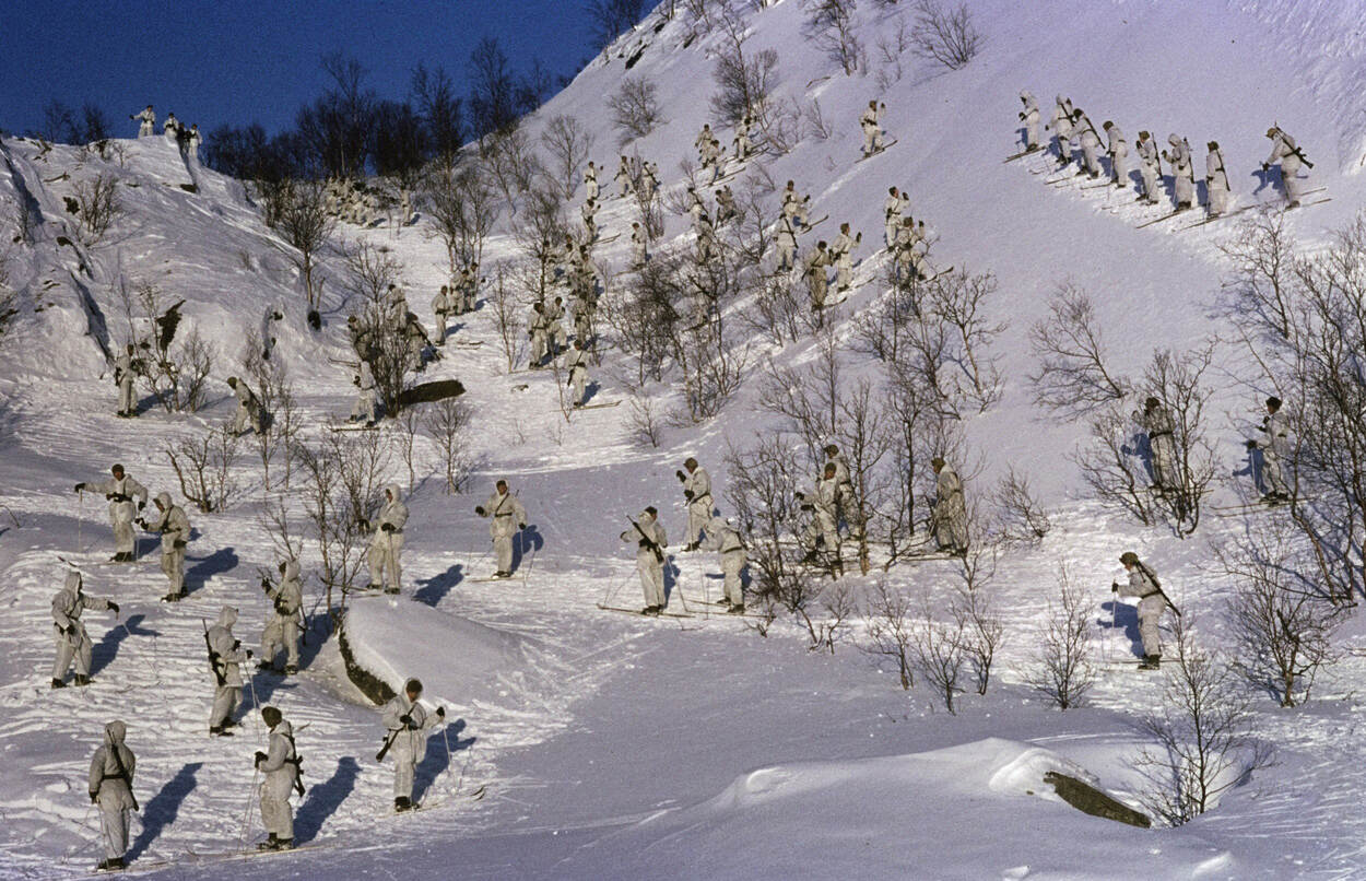 Heeft u afgelopen weekeinde ook zo genoten van de sneeuw? Vanwege de hoge temperaturen is de pret in Nederland vaak van korte duur. Hoe anders is dat in Scandinavië. Daar blijft de witte wereld weken, zelfs maandenlang bestaan. Op deze gedateerde, fascinerende plaat van het Nederlands Instituut voor Militaire Historie (NIMH), zijn mariniers op wintertraining te zien. Hoeveel zijn het er precies?