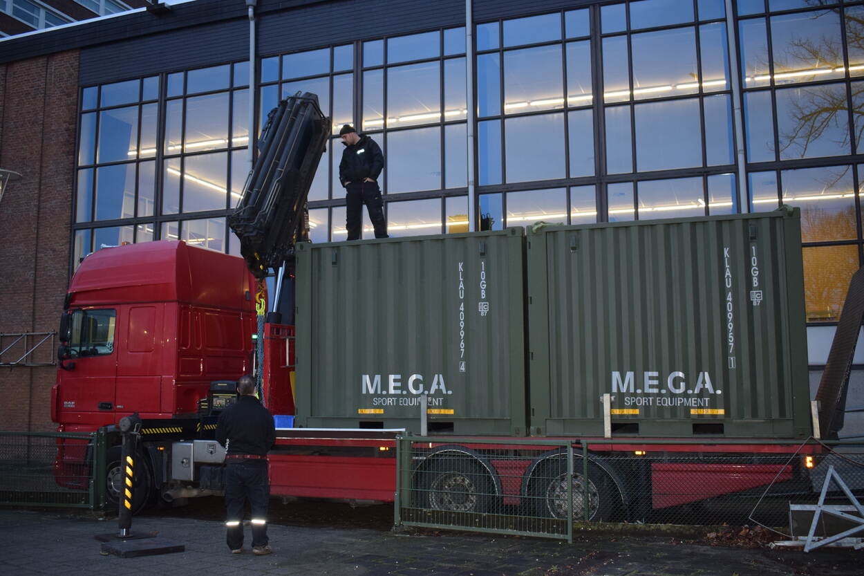 De mobiele sportzalen hebben het formaat van hele en halve zeecontainers