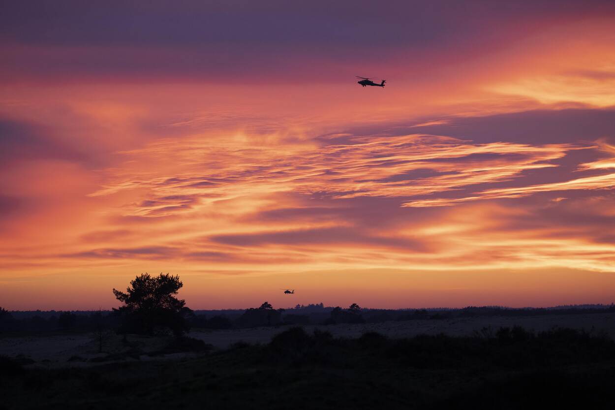 Trouwe inzender van deze rubriek Manolito Jaarsma was maandag in Nationaal Park de Hoge Veluwe, toen hij tot zijn grote verrassing twee Apaches aan het werk zag boven stuifzandlandschap ‘De Pollen’. Het zou zomaar kunnen dat de bemanningen bezig waren met een oefening TAC EW, oftewel Tactische Elektronische Oorlogsvoering. Die begon namelijk deze week.