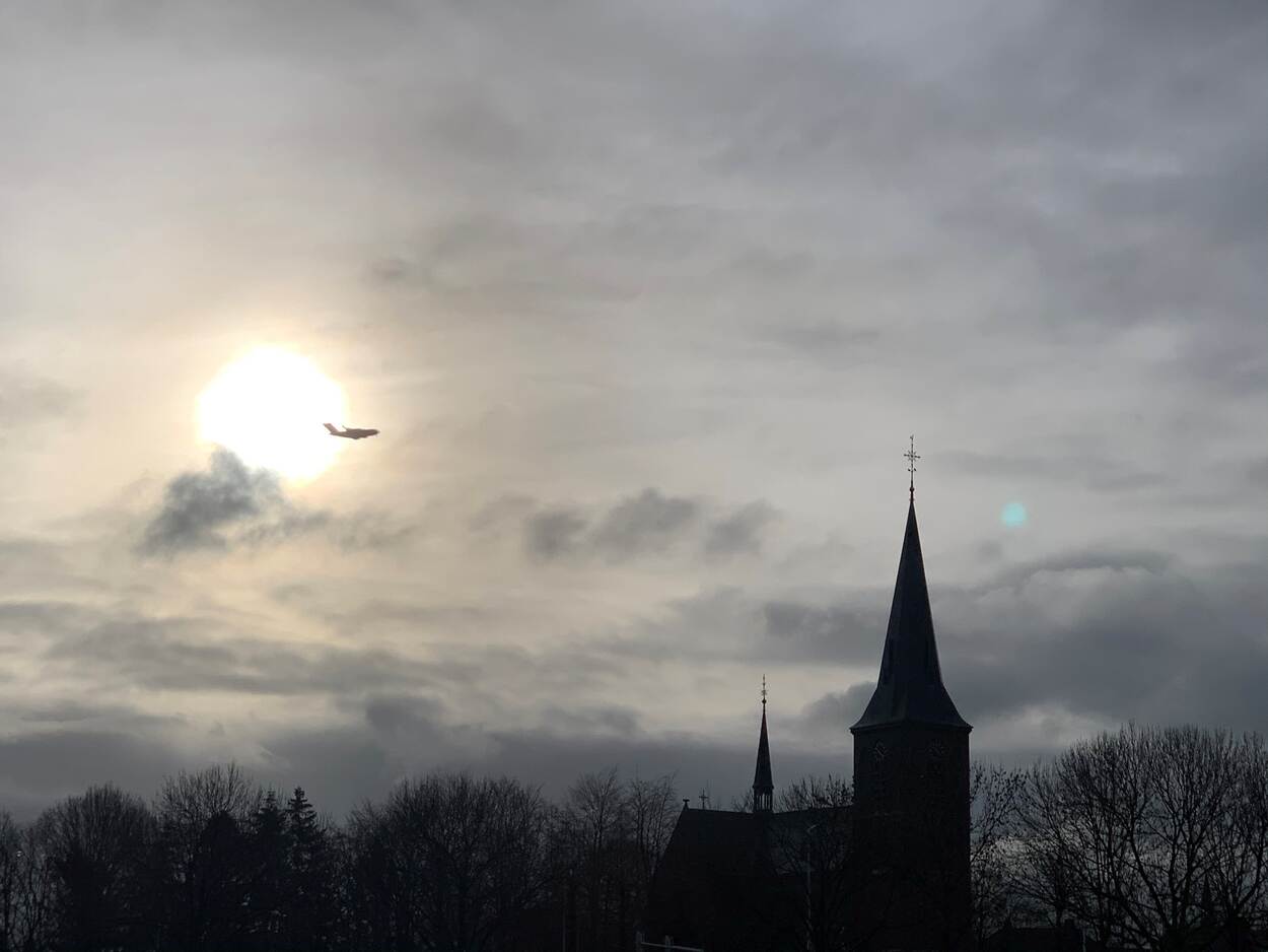 Sergeant-1 Emiel Kremers was nabij het Brabantse Beers aan de wandel met de hond, toen hij een C-17 Globemaster van de US Air Force zag opstijgen. Dit type doet eenmaal per maand vliegbasis Volkel aan. Het mooie aan de foto is volgens de technisch specialist ‘C-130’ dat zowel de zon als de maan erop te zien zijn.