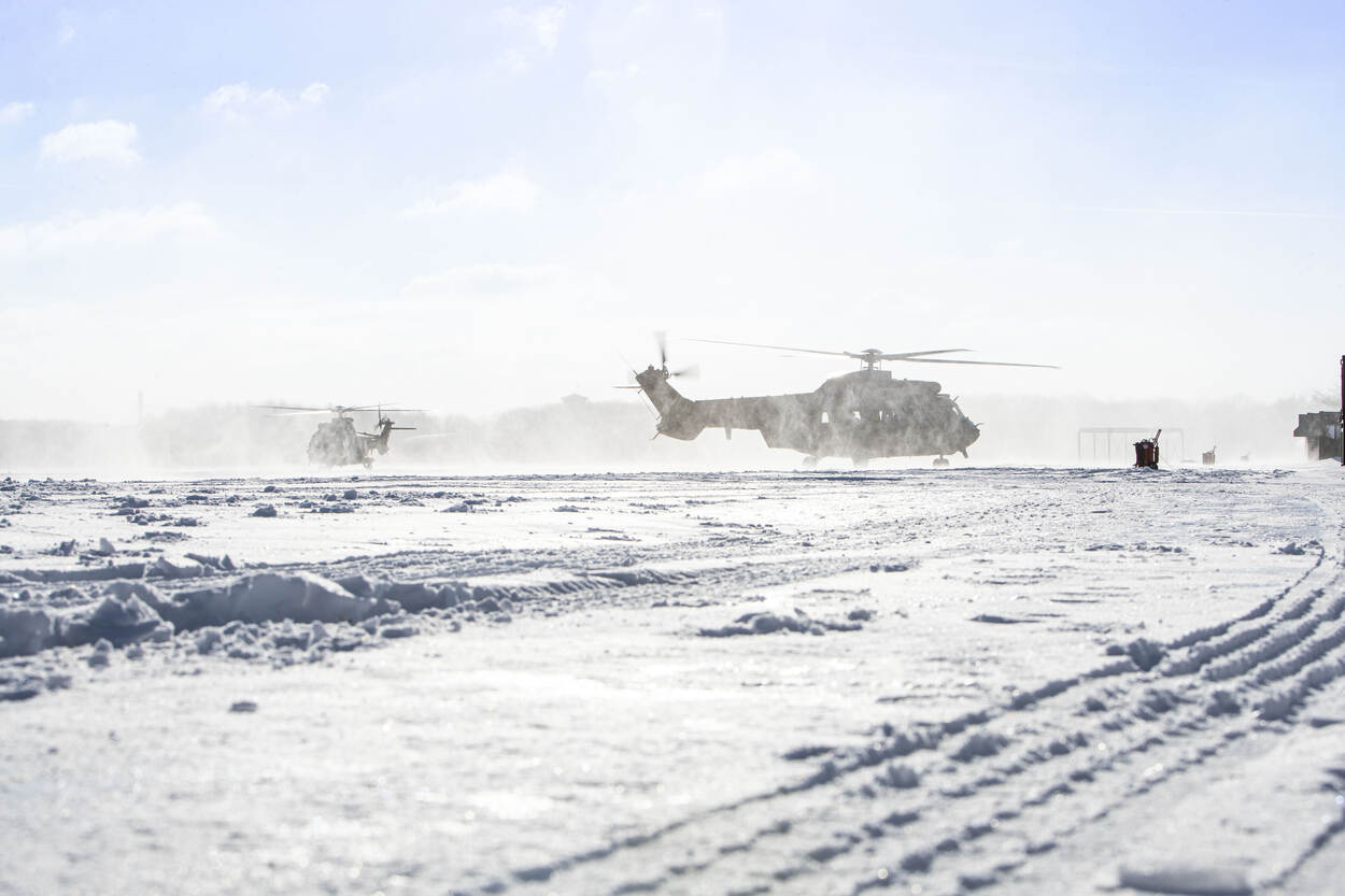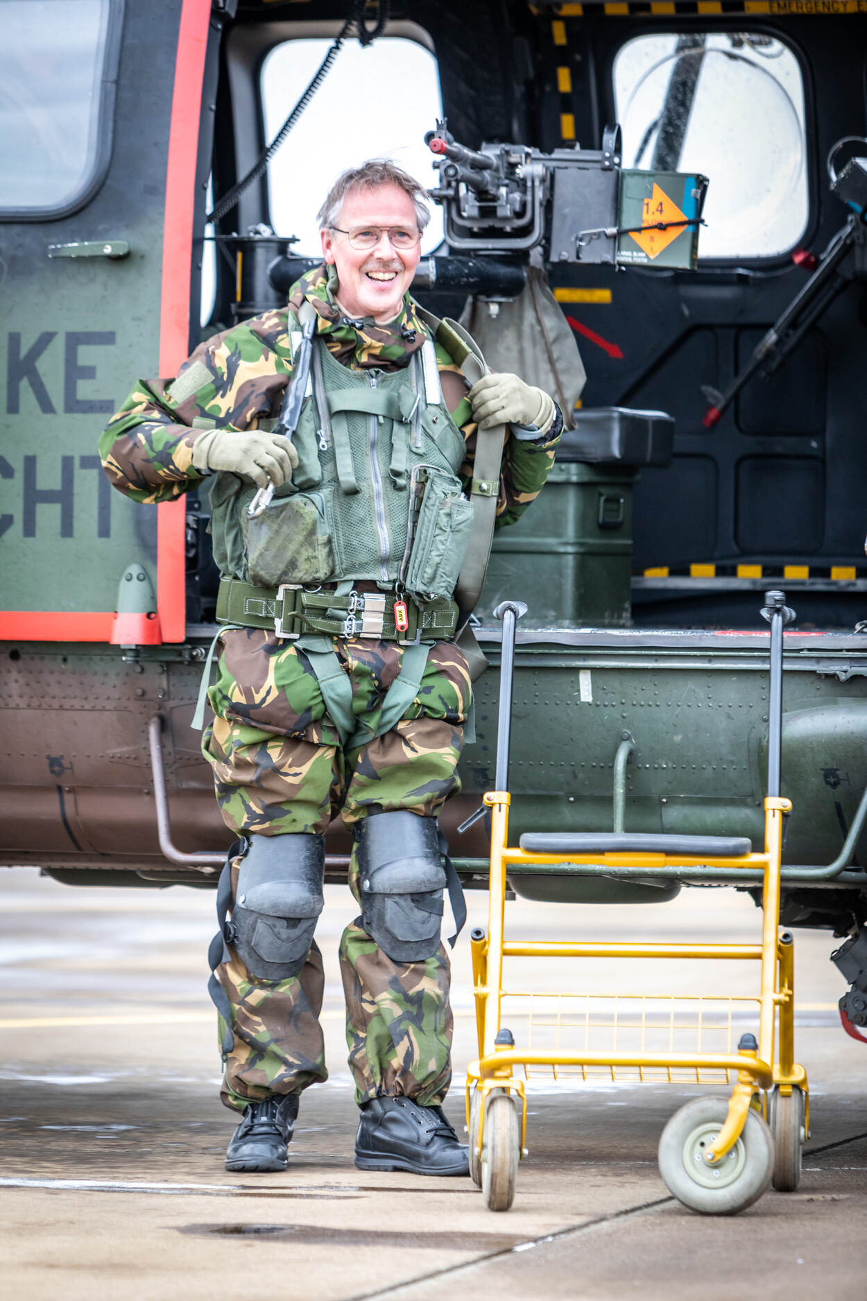 “Deze week ben ik weer ingestapt voor een white out oefening. Als je met een heli boven losse sneeuw vliegt gaat dat enorm stuiven. Het vereist een speciale techniek om daarin veilig te landen. Van het pak sneeuw maken we mooi gebruik”, vertelt de 57-jarige JP, zoals z’n collega’s hem noemen. In 1997 ging hij als loadmaster bij 300 squadron aan de slag.