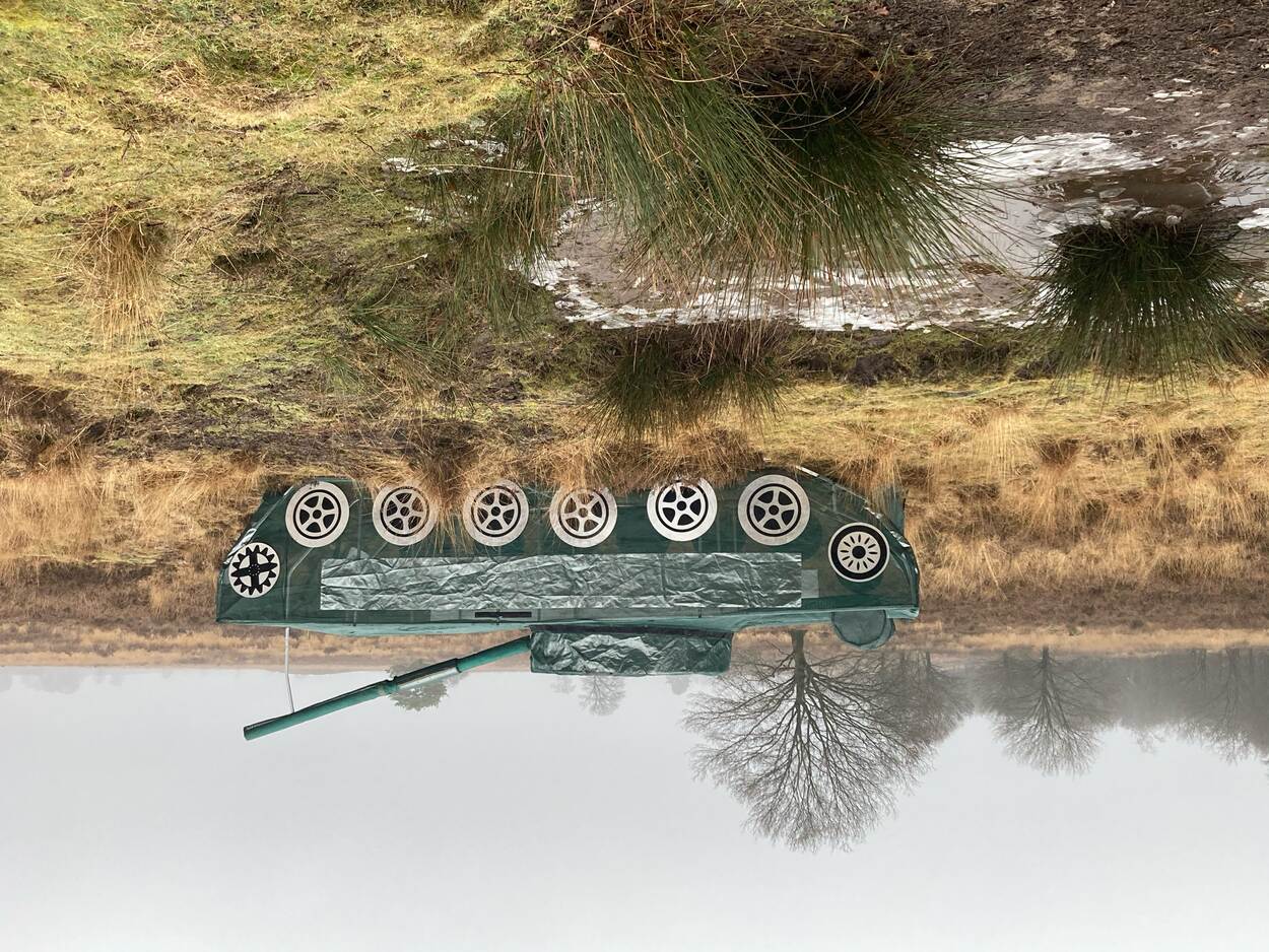 Korporaal-1 Marcel Veenman stuurde ook een foto in van een doelwit voor de recente TAC EW training van het Defensie Helikopter Commando. Deze zogenoemde Tank In A Bag is een object dat de Groep Luchtmacht Reserve gebruikt bij het uitbeelden van oefendoelen voor de Apache gevechtshelikopter. Helaas voor fotograaf Veenman ging de missie vanwege slecht weer niet door. En dus mocht hij op de Ermelose Heide zijn doel onverrichter zake laten leeglopen.