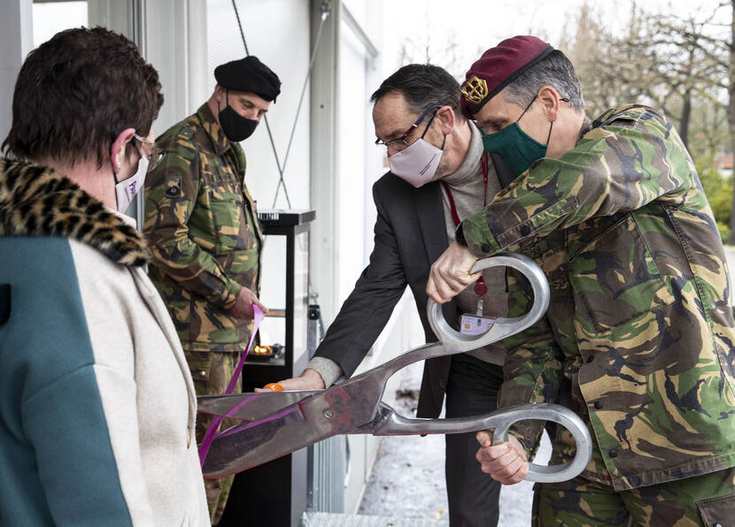 Een van onze fotografen, sergeant Cinthia Nijssen, legde de ludieke ingebruikname van het nieuwe bedrijfsrestaurant op de Johan Willem Frisokazerne in Assen vast. Directeur Paresto Dirk Uittenbogaard en commandant van huiseenheid 13 Infanteriebataljon Luchtmobiel Stoottroepen luitenant-kolonel Pieter Grijpstra verrichtten de opening met grof geschut.