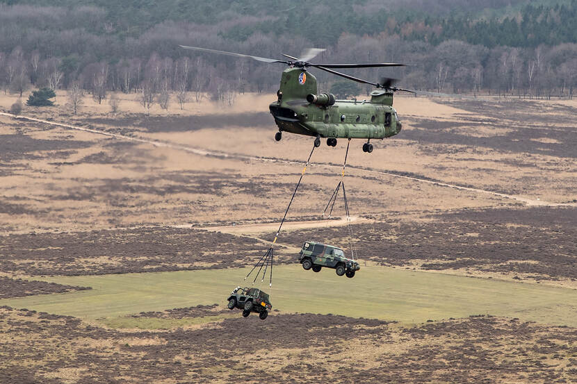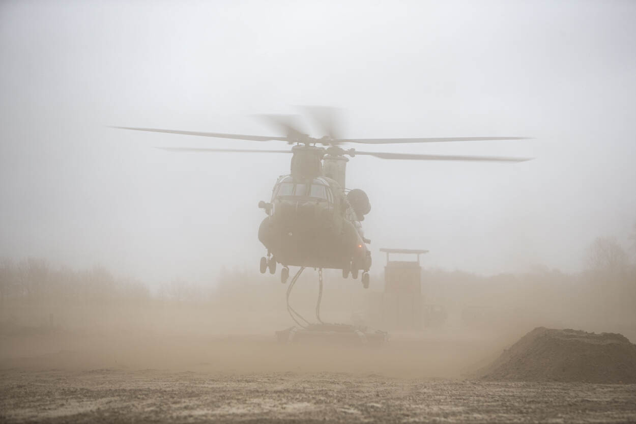 Land- en luchtmacht sloegen deze week de handen weer eens ineen tijdens een zogeheten slingery oefening. Gezamenlijk hesen ze duizenden kilo’s aan lading van de grond om deze dwars door de lucht van A naar B te zwieren. Even gemist? Check hier de toffe platen van dit spektakel!