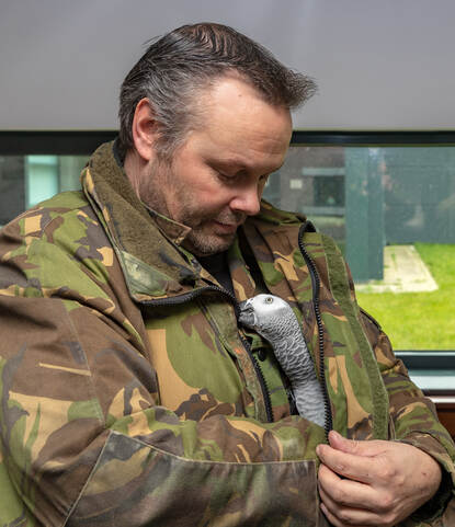 Stolk is geen papegaaienonbekende. Hij nam op zijn tiende de ‘blauwvoorhoofdamazone’ over, die zijn opa net na de Tweede Wereldoorlog kreeg. “Ik heb deze vogel tot z’n dood in 2010 gehad. Toen de vaste verzorger van de huidige Polly-5 de dienst verliet, hoefde ik niet lang na te denken over wie z’n opvolger moest worden.”
