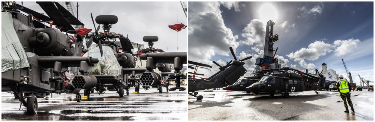 Zo’n 1.200 voertuigen en containers en nog eens 54 Black Hawks, Chinooks en Apaches van een brigade van de 101st Airborne Division zijn onderweg naar de thuisbasis in Kentucky. Het schip vertrok gisteren uit de Rotterdamse haven. 75 Nederlandse militairen zijn ingezet om het schip te laden, de zogenoemde Host Nation Support.