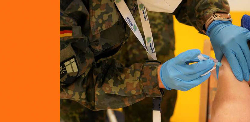 De Duitse strijdkrachten helpen mee om zo snel mogelijk, zoveel mogelijk mensen in Duitsland te vaccineren tegen het coronavirus. Sinds het Paasweekeinde bemenst de Bundeswehr een eigen locatie in de plaats Lebach in de deelstaat Saarland, waar 24 uur per dag wordt ingeënt.