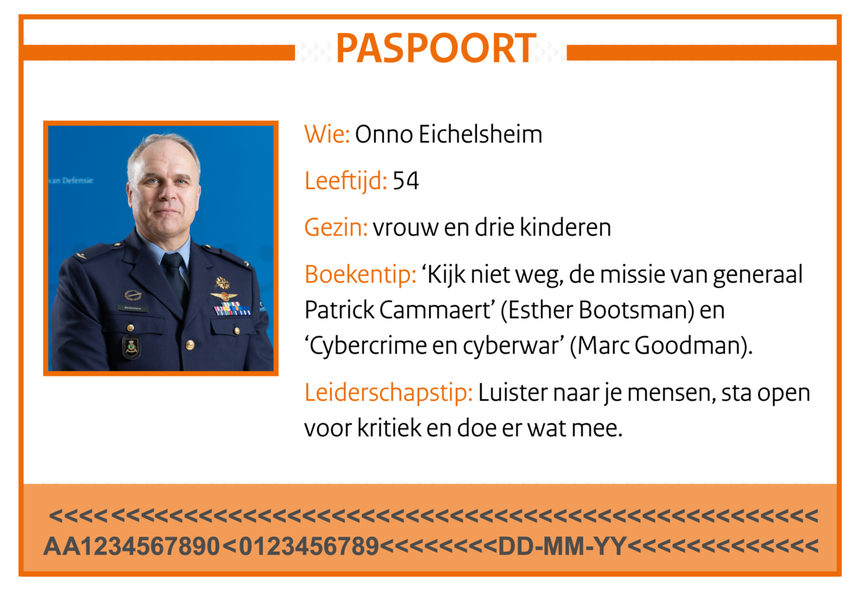 Wie de grenzen opzoekt, begaat ongetwijfeld een keer een misstap. Zo dankt de generaal zijn call sign ‘speedy’ aan het feit dat hij vroeger een snelheidsduivel was. “Ik reed consequent te hard en zocht de grenzen op. Achteraf natuurlijk heel onverantwoord’, zegt Eichelsheim met een twinkeling in zijn ogen. Inmiddels is hij ouder en wijzer, maar hamert erop dat het belangrijk is om grenzen op te zoeken. “Ik wil dat mensen een probleem op een creatieve manier benaderen en niet met standaardoplossingen komen. Op die manier blijf je scherp.”