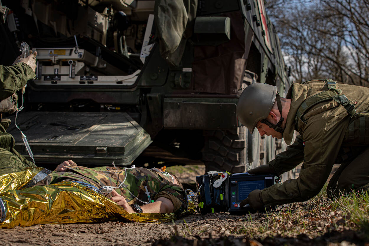 Medisch personeel van 43 Gemechaniseerde Brigade trainde deze week te velde met de nieuwe Tempus ALS patiënten-monitor. Met dit apparaat kunnen de vitale functies van een gewonde beter dan ooit worden geregistreerd. Sergeant-majoor Maartje Roos bracht treffend het werk de Geneeskundige Dienst in beeld.