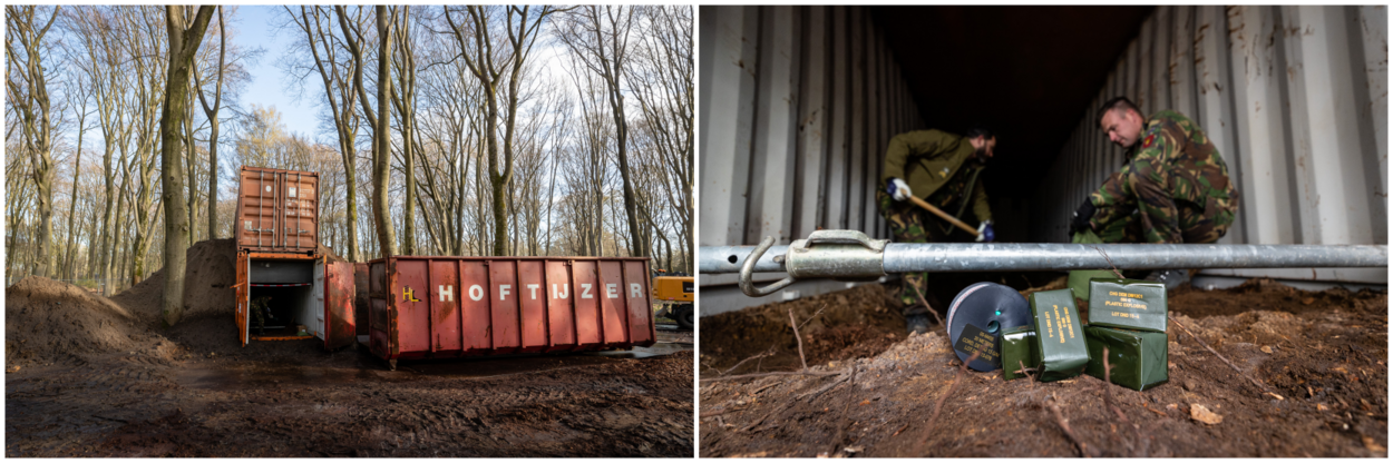 Maar is verplaatsen geen optie? “Nee, de bom heeft een dunne wand. Die is bij het neerkomen waarschijnlijk ingedeukt. We weten niet in hoeverre de binnenkant beschadigd is. Als we de ontstekers eruit halen, kan er zuurstof bij de fosforlading komen die de brandemulsie van diesel en magnesium in brand zet. Dat is niet wenselijk. Daarom hebben we ter plekke een springlading van twee kilo op de bom geplaatst waarna die gecontroleerd uitbrandt.”