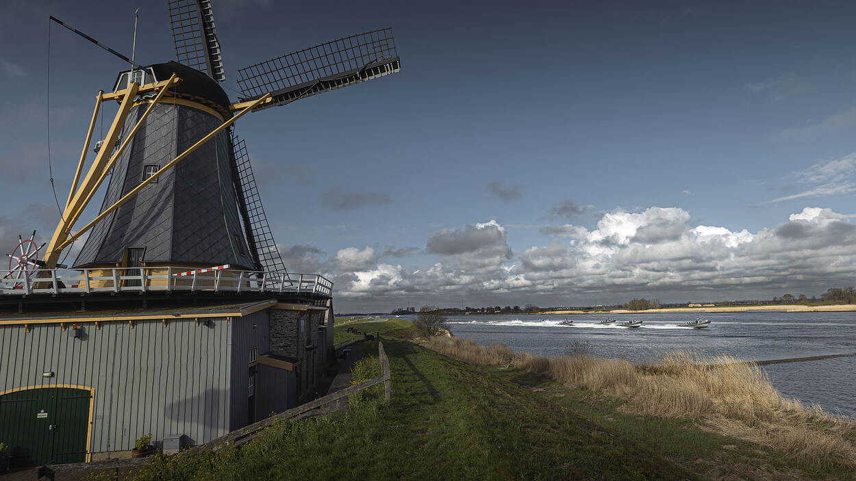 In de buurt van Streefkerk legde fotograaf sergeant Jasper Verolme deze vier FRISCS vast, varend door een wel heel erg Hollands landschap. De snelle boten van het Korps Mariniers kwamen uit Rotterdam, waar ze meededen aan de oefening Port Defender. Op de terugweg namen de zeesoldaten de lange weg; via IJmuiden voeren zij naar thuisbasis Texel.