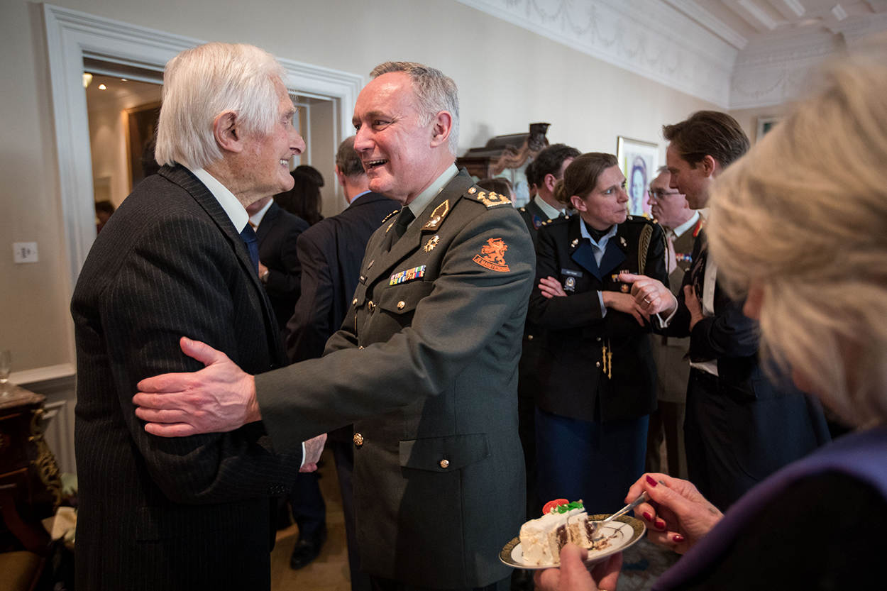 Even honderd jaar later staat Ridder Militaire Willems-Orde Ken Mayhew twee uur lang felicitaties in ontvangst te nemen in de ambtswoning van de Nederlandse ambassadeur in Londen, Simon Smits. “Ik ben op zoek naar zijn geheim: hoe word je 100 (destijds tijdens het interview, red.) zoals Ken", zegt één van de gasten, inmiddels voormalig Commandant der Strijdkrachten generaal Tom Middendorp.
