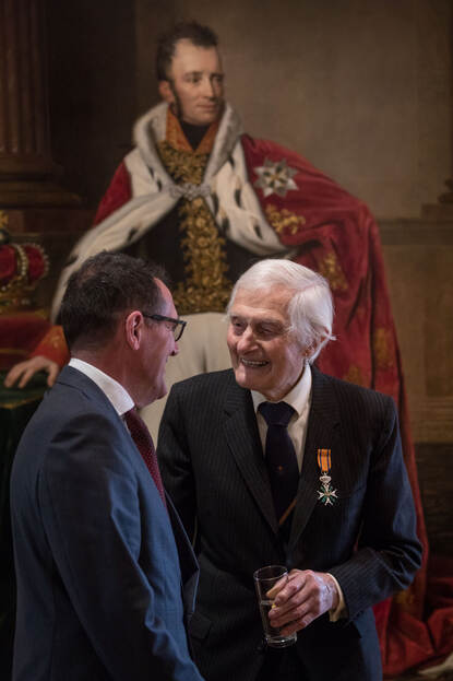 “We stonden perlex toen in 2011 de melding kwam dat er mogelijk nog een Ridder MWO in leven was. Ik was de eerste die hem, namens het Kapittel, bezocht. Er was meteen een klik, ook met zijn vrouw. Ondanks dat ik al drie jaar weg ben bij het Kapittel, bezoeken we elkaar een paar maal per jaar. Ken komt bijvoorbeeld elk jaar in mei over voor de herdenking van de capitulatie in Wageningen. Trish en hij willen niets missen. Hij is veel te bescheiden; hij spreekt nauwelijks over wat hij in de oorlogsjaren heeft meegemaakt.”