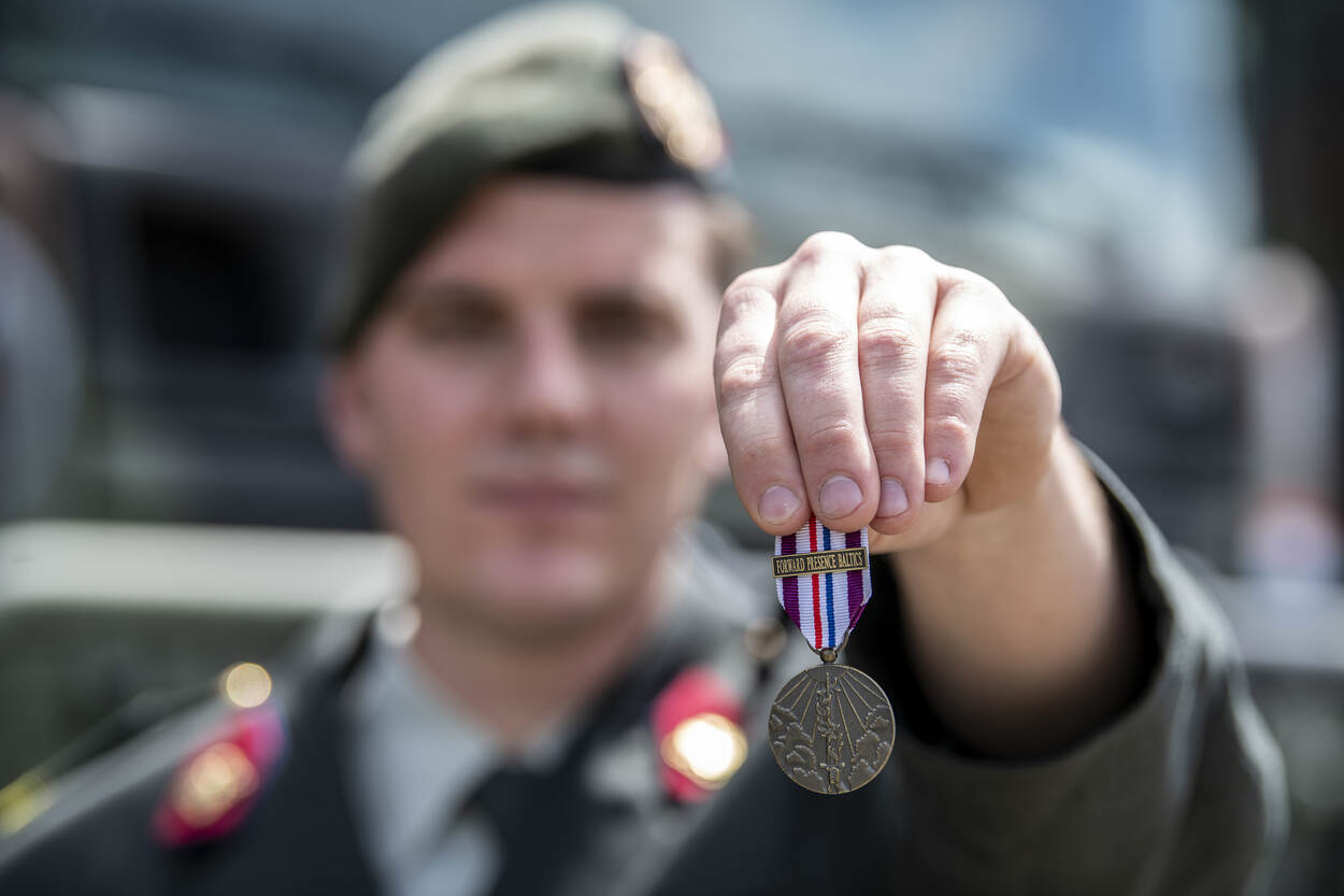 Een coronaproof medaille-uitreiking? Geen punt op de Legerplaats in Stroe. Daar ontvingen 31 militairen woensdagmiddag via een soort drive thru de herinneringsmedaille voor hun inzet aan de missie enhanced Forward Presence (eFP) in Litouwen.
