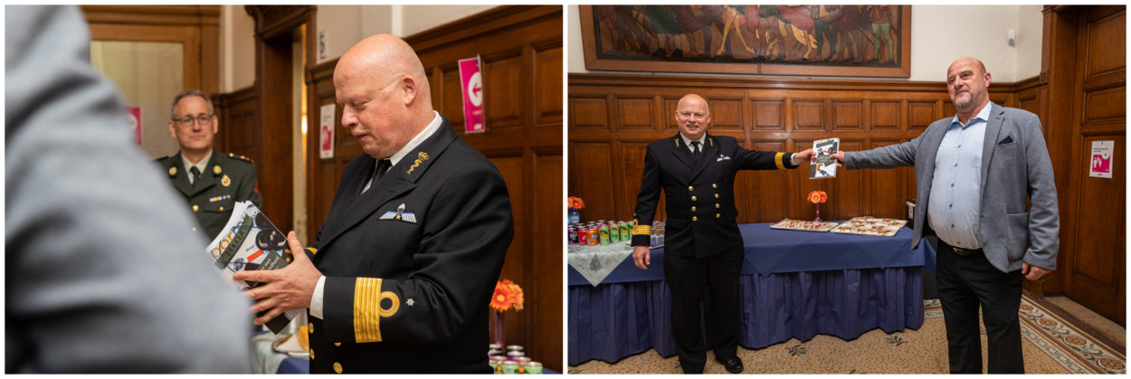 Het eerste exemplaar van ‘Leven met slechthorendheid’ werd eerder deze week overhandigd aan de commandant van de Defensie Gezondheidszorg Organisatie. Commandeur-arts Remco Blom: “Aan gehoorschade kun je júíst vooraf veel doen. Oorkappen, otoplastieken, informatie, periodieke controles…Het heeft onze prioriteit.”