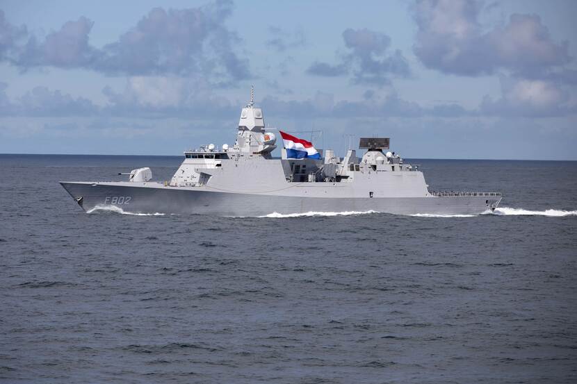 Wat doe je wanneer je het enige Nederlandse schip bent in een eskader vol buitenlandse partners. Juist, je maakt de vlag nét iets groter zodat je buitenlandse vrienden allemaal zien dat je een échte Nederlander bent. Dat zal de bemanning van Zr.Ms. De Zeven Provinciën vast gedacht hebben toen ze deze enorme vlag toonden. Dat is pas écht kleur bekennen. Foto: MCS2 Nathan T. Beard.
