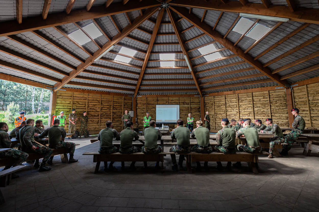 Vandaar dat Samen Sterker de deelnemers twee dagen een vol en uitdagend programma biedt. Het begint allemaal met een dagje theorie. “Omdat het ondoenlijk is om bij deze oefening iedereen op anderhalve meter te houden, hebben àlle deelnemers een coronatest gedaan”, meldt hoofd inwendige dienst van 11 Luchtmobiel sergeant-majoor Erik Bijker voor de zekerheid.