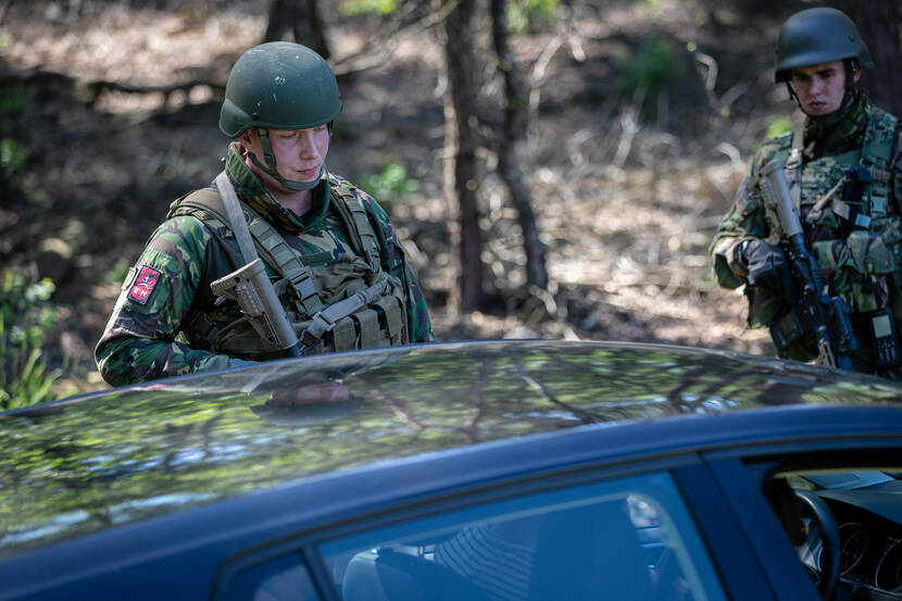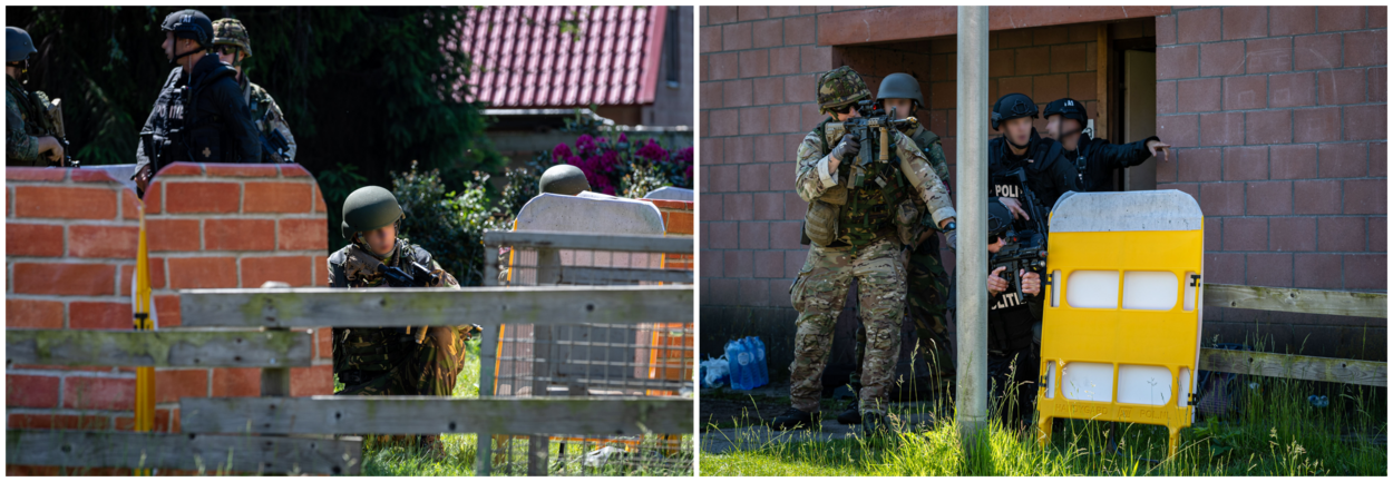 Toch blijken er haken en ogen aan de samenwerking te zitten. “Er gelden bijvoorbeeld heel andere geweldsinstructies. Dat besef krijgen onze militairen pas tijdens zo’n oefening”, legt overste Van den Brink uit. “De benadering van de politie is soms heel anders dan wij zijn gewend.” Dat is goed te zien bij een van de bewaakte objecten in Oostdorp. De luidruchtige bewoners, gespeeld door acteurs, beginnen verdacht gedrag tonen waarnaar de militairen de wapens instinctief ‘hoog’ houden. Immers, iedereen kán een terrorist zijn.