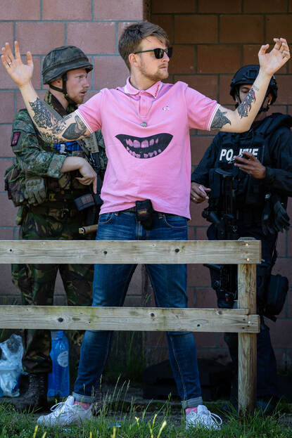 Hij, majoor Lazaroms en inspecteur Mandy hebben in ieder geval voor een aantal zeer reële en vooral levendige incidenten gezorgd, waarbij er gedurende de dag genoeg actie is voor de bewakingseenheden. Dan is er een stel al te uitbundige feestvierders in de auto. Het volgende moment vliegen de kogels en handgranaten door de lucht.