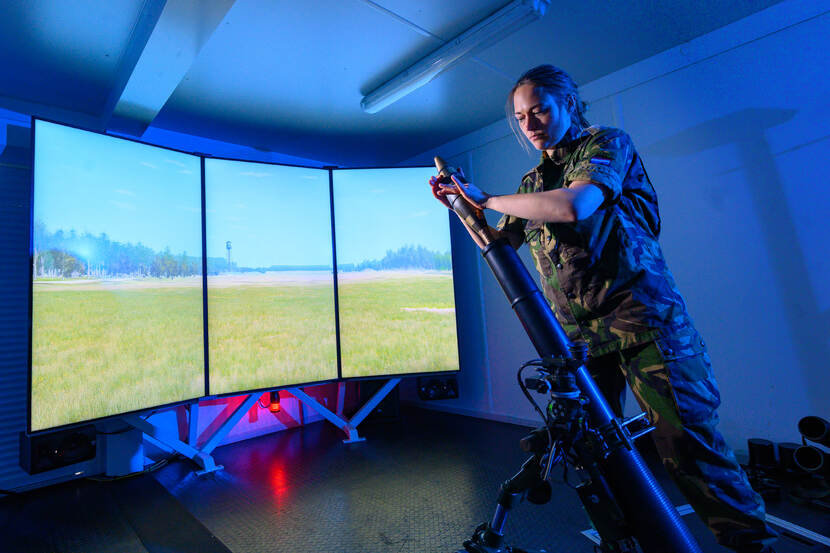 Sta je dan, met een mortier in je hand. Gedwee glijdt de 81 mm in de buis, waarna er op de drie 4K-beelschermen stofwolken verschijnen en de grond onder de voeten trilt. Een tijdje is het stil, maar dan klinkt er een luide knal. Een inslag! Nee, niet op een oefenterrein of in een missiegebied, maar allemaal vanuit de Generaal van Steveninckkazerne in Oirschot.