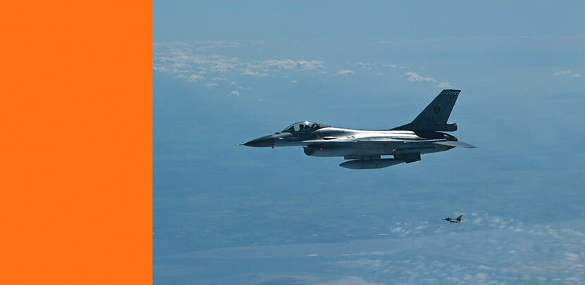 Op weg naar oefendoelen in de Baltische Zee zijn grote Amerikaanse B-52 bommenwerpers beschermd door Nederlandse F-16's. De toestellen zorgden ervoor dat de Amerikanen veilig konden verplaatsen.