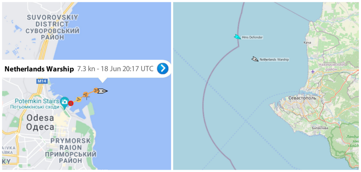 Op marinetraffic.com was te zien dat een 'Netherlands warship' en 'British warship' uit Odesa vertrokken. De schepen doorkruisten de Zwarte Zee en zetten koers naar de Krim. In de vroege ochtend van 19 juni namen ze positie in op ongeveer één kilometer van de haven van Sebastopol. De beelden op marinetraffic.com lieten ook zien dat de oorlogsschepen na verloop van tijd weer omdraaiden en wegvoeren. Een opvallende situatie, want Sebastopol ligt op de Krim én is de thuishaven van de Russische marineschepen in dit gebied, de zogenoemde Zwarte Zeevloot. In werkelijkheid bevestigden webcambeelden van de haven van Odesa dat de Evertsen en Defender daar gewoon in de haven lagen en niet van hun plaats waren geweest.