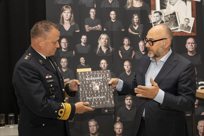 De Graaff zette een oproep op sociale media en begon te fotograferen. Eigenlijk zonder plan. “Ik dacht, misschien kan ik uiteindelijk een expositie maken van de portretten.” Hij deelde zijn werk online en steeds meer veteranen meldden zich. “Ik vroeg hen om ook een herinnering van een uitzending op te schrijven. Daar rolden hele interessante verhalen uit. Van alle kanten werd ik aangespoord om er een boek van te maken. ‘Veteranen’ is het resultaat. Hier ben ik natuurlijk ontzettend trots op.”
