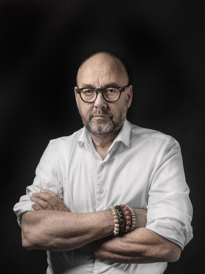 Het is de simpliciteit waar deze serie in uitblinkt, vindt de fotograaf. “Ik heb ervoor gekozen om iedereen in een zwart shirt te fotograferen en niet in uniform. Voor mij blijft dat een soort omhulsel. Een muur tussen de buitenwereld en de mens erachter. Je moet naar de ziel worden getrokken. Aan regie doe ik dan ook niet. Het enige wat ik zei was: ‘Ga in gedachten terug naar je uitzending of belevenis’. Dat eerste instinctieve gevoel zie je terug. Dat maakt het ontzettend krachtig.”