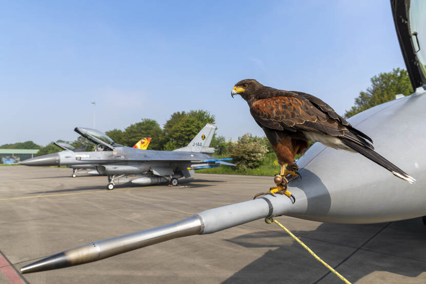 Nog een foto van het afscheid op Leeuwarden. Om dit moment in de geschiedenis te markeren, werd het symbool van de luchtmacht niet vergeten. Hoe toepasselijk: de adelaar zitten op een pitotbuis.