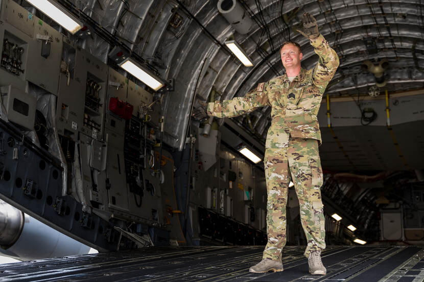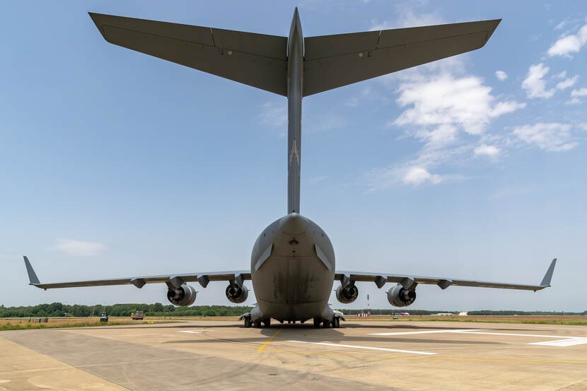 Alles moet zo snel mogelijk weg uit Afghanistan, omdat er op 11 september een einde komt aan de missies in het land. Daarom vliegen twee C-17’s twee weken lang af en aan tussen Roemenië en Afghanistan. Een ideale klus voor het enorme transporttoestel, dat per vlucht 155 mensen of 75.000 kilo kan vervoeren. Van den Berge noemt het dan ook een ‘vliegende tank’. “Wat ik vervoer maakt me weinig uit: alles wat erin past en niet door de vloer zakt kunnen we theoretisch vervoeren.”