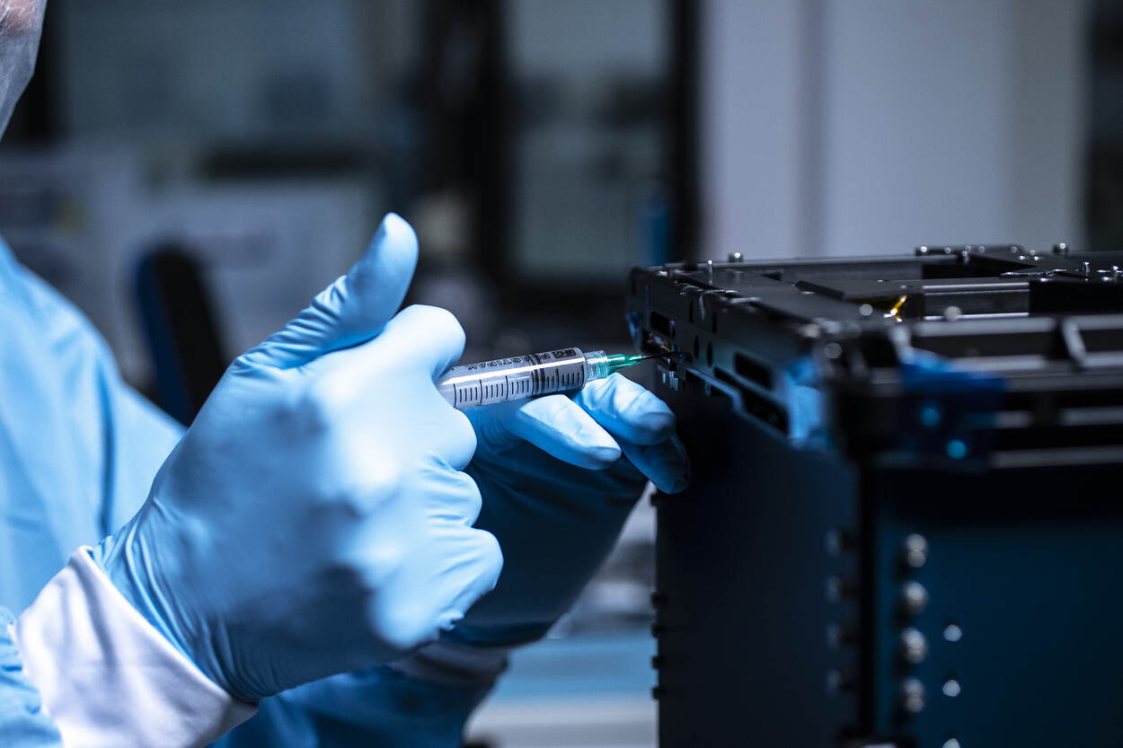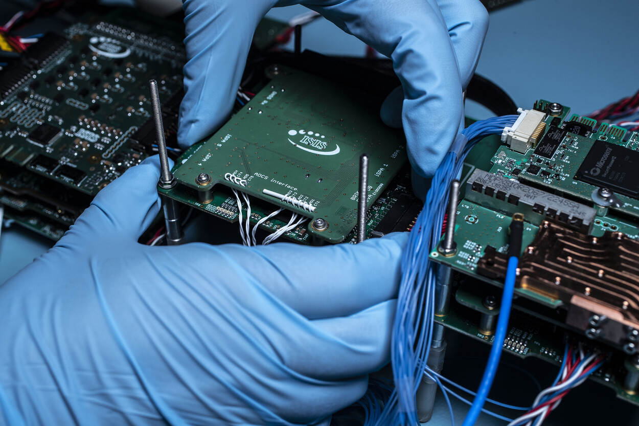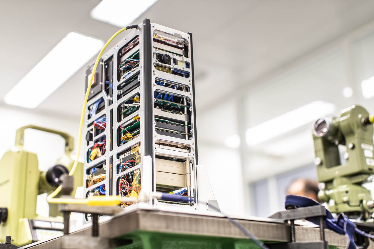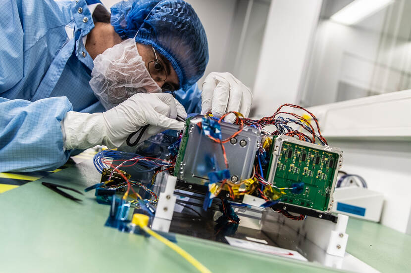 Voor de goede orde: het frame en het omhulsel zijn van de firma ISISPACE in Delft. De communicatieapparatuur is van Defensie, in samenwerking met de TU Delft. Met dank ook aan het LCW, waar Kooijman en zijn team onder meer met 3D-printing en software tools allerlei slimme oplossingen bedachten voor bepaald niet alledaagse problemen. “Meest complex was het positioneren van een bijzondere chip op een heel kleine printplaat. Vanwege het risico op kortsluiting was dat een heel nauwkeurig karwei.”
