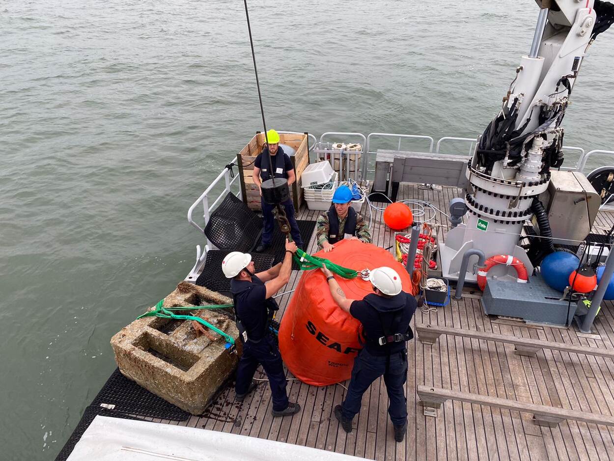 Na de vondst vorig jaar bevestigde de Remus-onderwaterdrone middels sonar dat er inderdaad tientallen Küstenminen A lagen. “Afgelopen april hebben we er al twaalf geruimd. Twee moesten we op zee laten ploffen, want we konden niet zekerstellen of het veilig was ze op te hijsen”, aldus Reitsema.