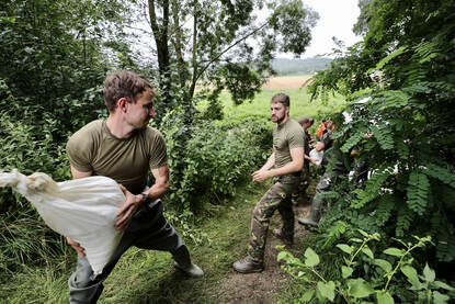 Gisteren lag de focus voornamelijk op het zuiden van de regio. Vandaag duiken de militairen voornamelijk op in het noordelijke deel van de provincie. Daar is nog steeds een strijd gaande tegen het wassende water van de Maas. Nooit eerder stroomde er per seconde 3,1 miljoen liter water door de rivier heen. Ook in het kleine stadje Wessem schoten de militairen te hulp met big bags, grote zandzakken om de dijk tussen Wessem en Thorn te verzwaren.