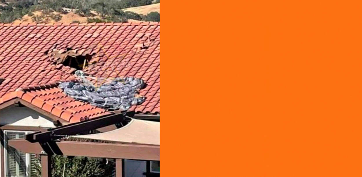 Parachutist gaat door het dak