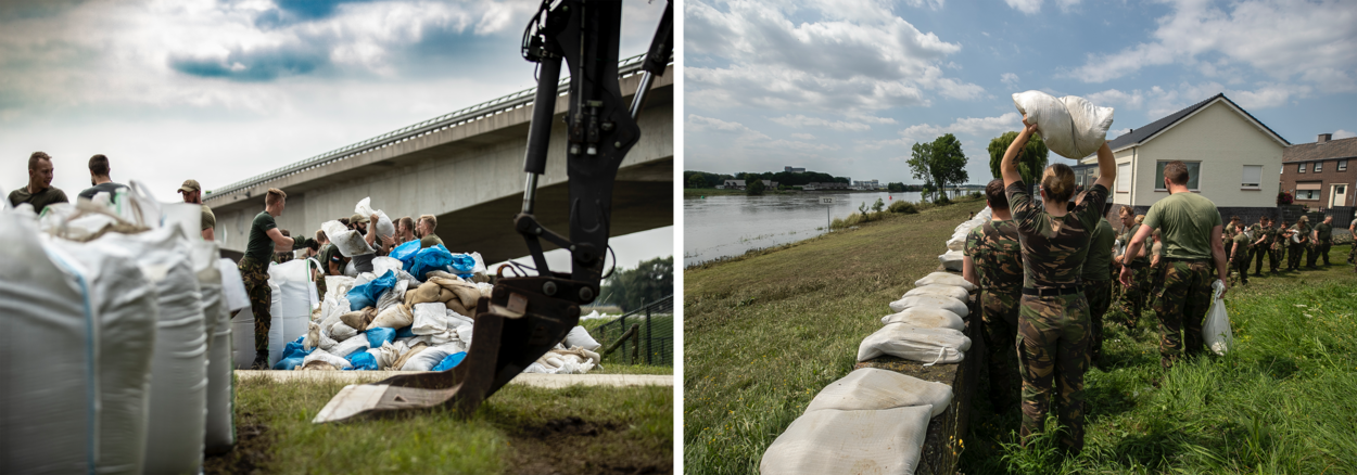Voor soldaat der 1e klasse Deveny is het de tweede keer in nog geen week tijd dat ze in het getroffen gebied staat. Dit keer gelukkig met een droog pak. Een surreële gewaarwording. “Ik ben donderdag en vrijdag ingezet in onder meer Meerssen en Elsloo. Daar hebben we geholpen met het leggen van zandzakken en het evacueren van bewoners uit verzorgingshuizen", vertelt de Boxer-chauffeuse van het 42e Pantserinfanteriebataljon.