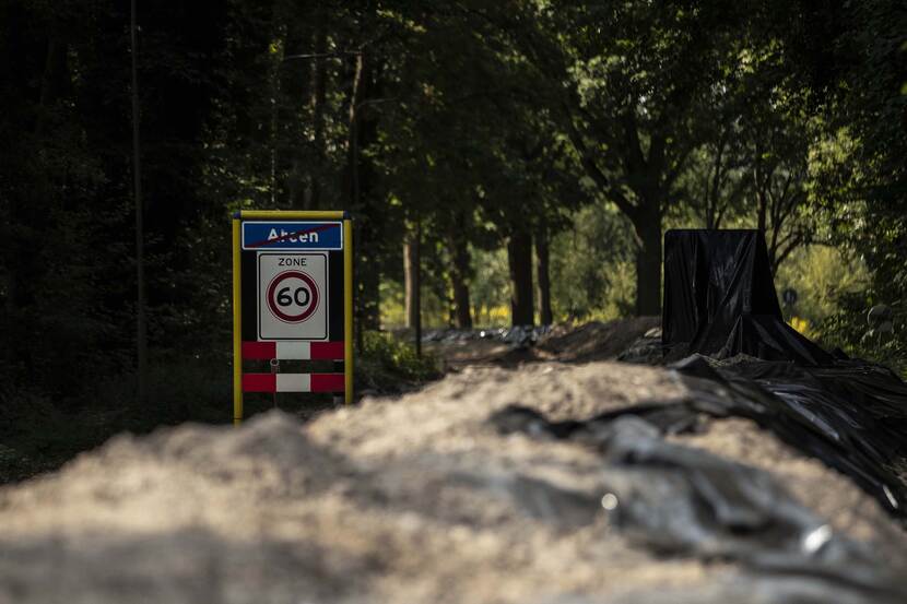 Dat herkent ook luitenant Chris van 411 Pantsergeniebataljon. Vorige week redde hij met zijn collega’s vier nachten lang alles wat er te redden viel. Foto’s op zijn telefoon spreken voor zich. “Het water kolkte aan alle kanten om ons heen.” Aan de rand in het gras achter hem is nog te zien dat het water tot een meter onder de dijkrand heeft gestaan. “Dat is nu gelukkig nog lastig voor te stellen.”