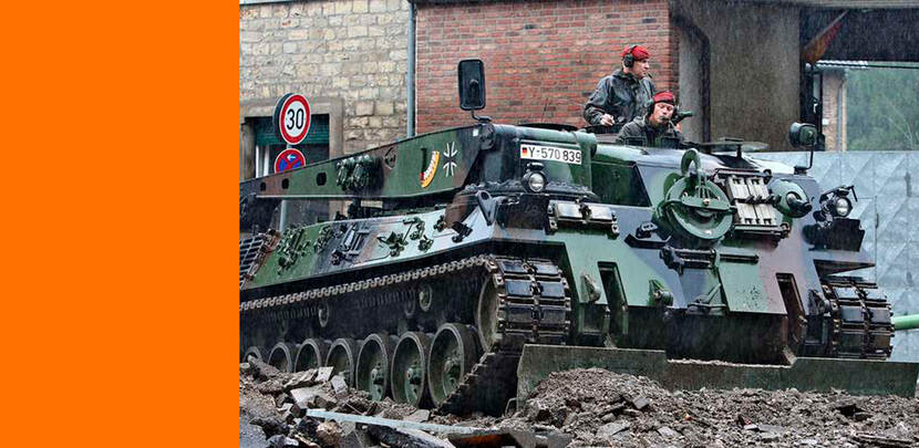 België en Duitsland hadden net als Nederland te lijden onder de wateroverlast. De impact was daar zelfs groter door de grote aantallen slachtoffers. De Bundeswehr en het Belgische leger moesten dan ook vol aan de bak. Dat gold met name voor onze Duitse collega’s, die op drie plaatsen in het land nodig waren.