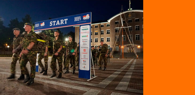 Het detachement ging dinsdagochtend om half vijf van start. Vanaf de Van Ghentkazerne in Rotterdam vertrokken ze naar Nijmegen, circa 165 kilometer verderop. De alternatieve Vierdaagse wordt dit jaar voor de tweede keer gehouden, omdat de 'normale Vierdaagse' door corona niet door kan gaan.