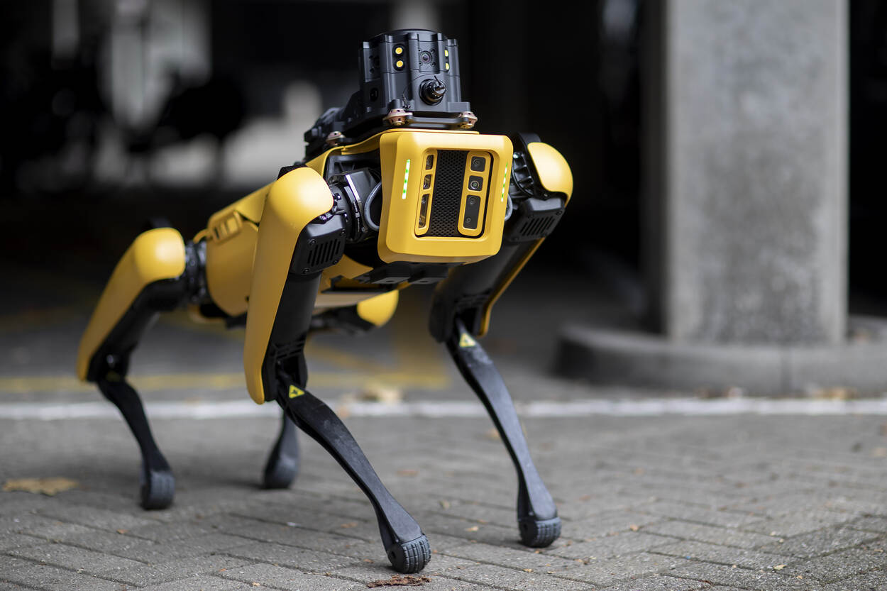 Spot komt uit de koker van het Amerikaanse robotbedrijf Boston Dynamics en was in eerste instantie bedoeld voor gebruik op bouwplaatsen, waar hij bijvoorbeeld spullen kan vervoeren op lastig begaanbare plekken. Al snel bleek Spot ook prima dienst te doen als speur- en verkenningstool. In Nederland experimenteren collega’s van de Dienst Speciale Operaties van de politie hier al volop mee. Zij zetten Spot onlangs nog in voor sporenonderzoek in een drugslab in Brabant.