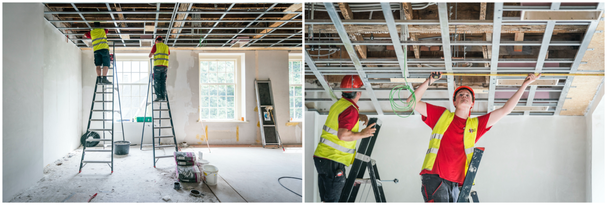De verbouwingen vinden plaats op de eerste en tweede verdieping en de zolder. De begane grond en de kelder zijn nog niet volledig aan de beurt maar worden wel brandveilig gemaakt. Ook worden alvast technische voorbereidingen getroffen voor bijvoorbeeld water en elektra. Én, niet geheel onbelangrijk: de lelijke, goedkoop ogende voorzetwand die de hal scheidt van het bedrijfsrestaurant wordt verwijderd.