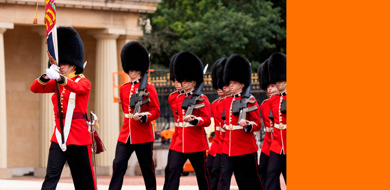 Voor het eerst sinds het begin van de coronacrisis vond deze week de aflossing van de wacht bij Buckingham Palace in Londen weer plaats met volledig ceremonieel. Dus met landmachtmilitairen in vol ornaat, compleet met berenmutsen, glimmende laarzen én militaire muziek. De ceremonie wordt vier keer per week gehouden: op maandag, woensdag, vrijdag en zonda.