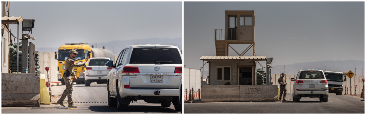 Op de militaire basis, waarvandaan anti-ISIS operaties plaatsvinden, is het weer een heel ander verhaal. Pal naast de internationale luchthaven, waar je vanuit Nederland ‘gewoon’ naartoe kunt vliegen, voeren grijze en beige tinten de boventoon.