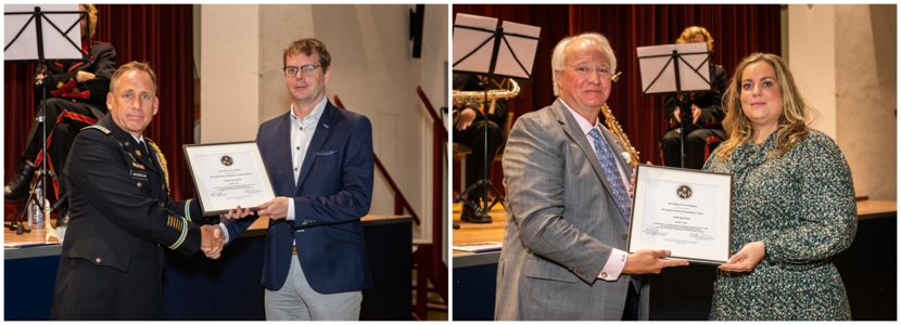 Twee voormalige militairen van 11 Luchtmobiele Brigade ontvingen vorige week vrijdag op de Oranjekazerne in Schaarsbergen een bijzondere en eervolle Amerikaanse onderscheiding. Sergeant der 1e klasse b.d. Ymo Hartzema kreeg de Legion of Honor Bronze Medallion en sergeant b.d. Jaaike Brandsma de Legion of Honor Humanitarian Award.