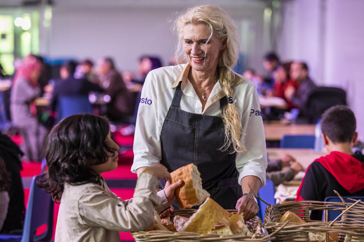 “Zodra ik binnenkom op het Walaardt Sacré Kamp, vliegen die kindjes me om de nek: “Lia, Lia, Lia!”. Ik ben echt een mensen-mens en vind het heerlijk, zoveel reuring om me heen. Ik werk deels op de opvanglocatie, deels gewoon op Camp New Amsterdam. Dat is natuurlijk niet te vergelijken. Als je ziet waar deze mensen vandaan komen. Schrijnend. Dit is gewoon heel dankbaar werk. We krijgen briefjes, kaartjes, tekeningen van de kinderen. Zo leuk. Wat er specifiek in de smaak valt? Bruine bonen! Die gaan ontzettend hard. Komende maanden gaan we experimenteren met Hollandse winterkost. Lekker hutspot, stamppot andijvie. Benieuwd hoe ze dat vinden.”