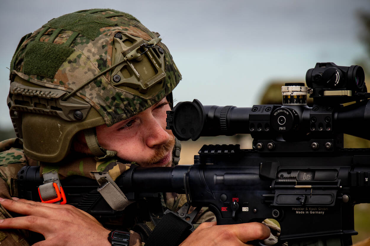 In Litouwen nemen ze schietvaardigheid uiterst serieus. 'Marksmen' van 43 Gemechaniseerde Brigade die deel uitmaken van de Battlegroup Lithuania van de NATO enhanced Forward Presence trainen er op afstanden tot 600 meter. Een 'marksman' is een schutter die deel uitmaakt van een infanteriegroep en zelfstandig doelen aangrijpt. Het wapen op de foto is een Heckler en Koch 417. De foto is van tweede luitenant Folko Sikkema.