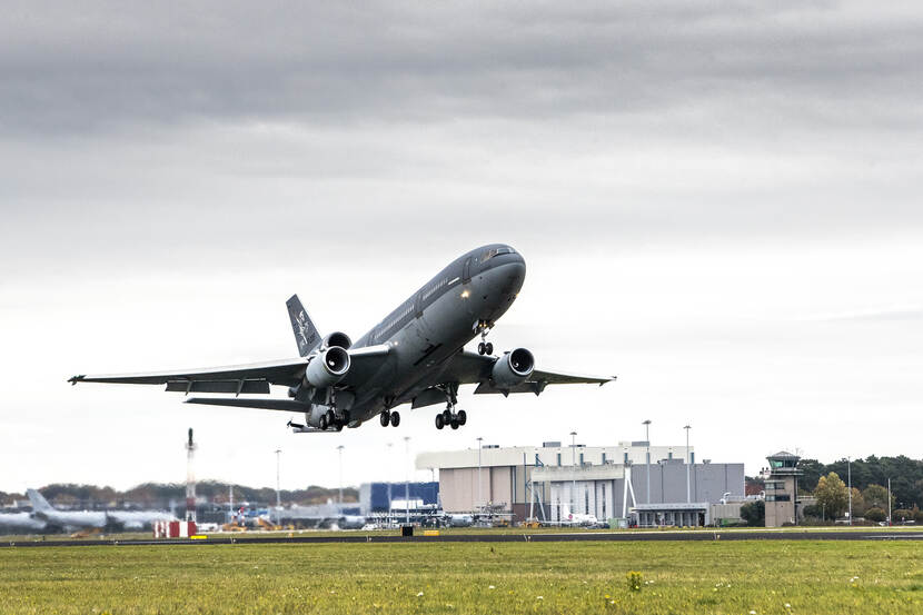 Sergeant-majoor Gerben van Es legde eerder deze week de finale take off van de T-235 ‘Jan Scheffer’ vanaf Vliegbasis Eindhoven vast. Eerder deze maand nam de KDC-10 met een vaarwelvlucht langs Nederlandse militaire en enkele civiele vliegvelden afscheid van de luchtmacht. Afgelopen maandag steeg de elegante reus voor de laatste keer vanaf Nederlandse bodem op om koers te zetten naar Amerika. Hier gaat het toestel bij de firma Omega Aerial Refueling Services een tweede leven als tanker tegemoet.