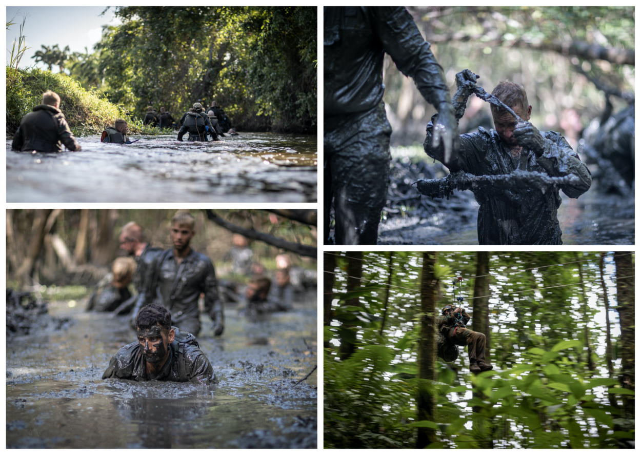 De mariniers en militairen van 13 Infanteriebataljon Luchtmobiel uit Assen leerden samen met hun Franse collega’s hoe zij zich het beste kunnen bewegen in bergachtig junglegebied. Over land, door het water, of door een combinatie van beide: modder. De Nederlanders werden hiervoor in hetzelfde jungletenue gestoken als de Fransen. De training is onderdeel van een jaarlijkse kennisuitwisseling tussen Nederland en Frankrijk. Het ene jaar organiseren de Fransen de training, het volgende jaar is het aan de Nederlandse mariniers in de West om iets uitdagends op poten te zetten.